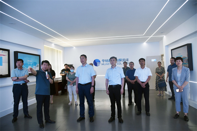 隨后,在孫玉濤的陪同下,盧飛一行先后參觀了智云中心、檢測中心、財務部、集中辦公區(qū)、面料公司、家紡公司、花布公司、家紡研發(fā)、研究院等處。