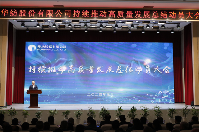 1月1日,華紡股份有限公司持續(xù)推動高質(zhì)量發(fā)展總結(jié)動員大會在會議中心一號會議室隆重召開。市國資委四級調(diào)研員王克寧,公司黨委書記、董事長盛守祥,公司黨委、行政班子成員以及員工代表等五百余人齊聚一堂,總結(jié)2023榮光,展望2024宏圖,表彰優(yōu)秀、激勵先進、凝聚共識、匯聚力量,以昂揚的姿態(tài)譜寫公司高質(zhì)量發(fā)展的新篇章。