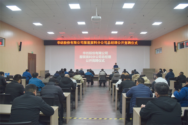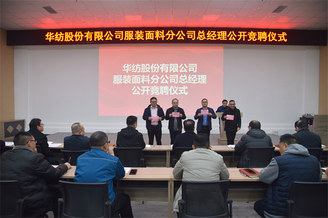 導(dǎo)讀:3月9日,公司在2號(hào)會(huì)議室舉行服裝面料分公司總經(jīng)理公開(kāi)競(jìng)聘儀式。